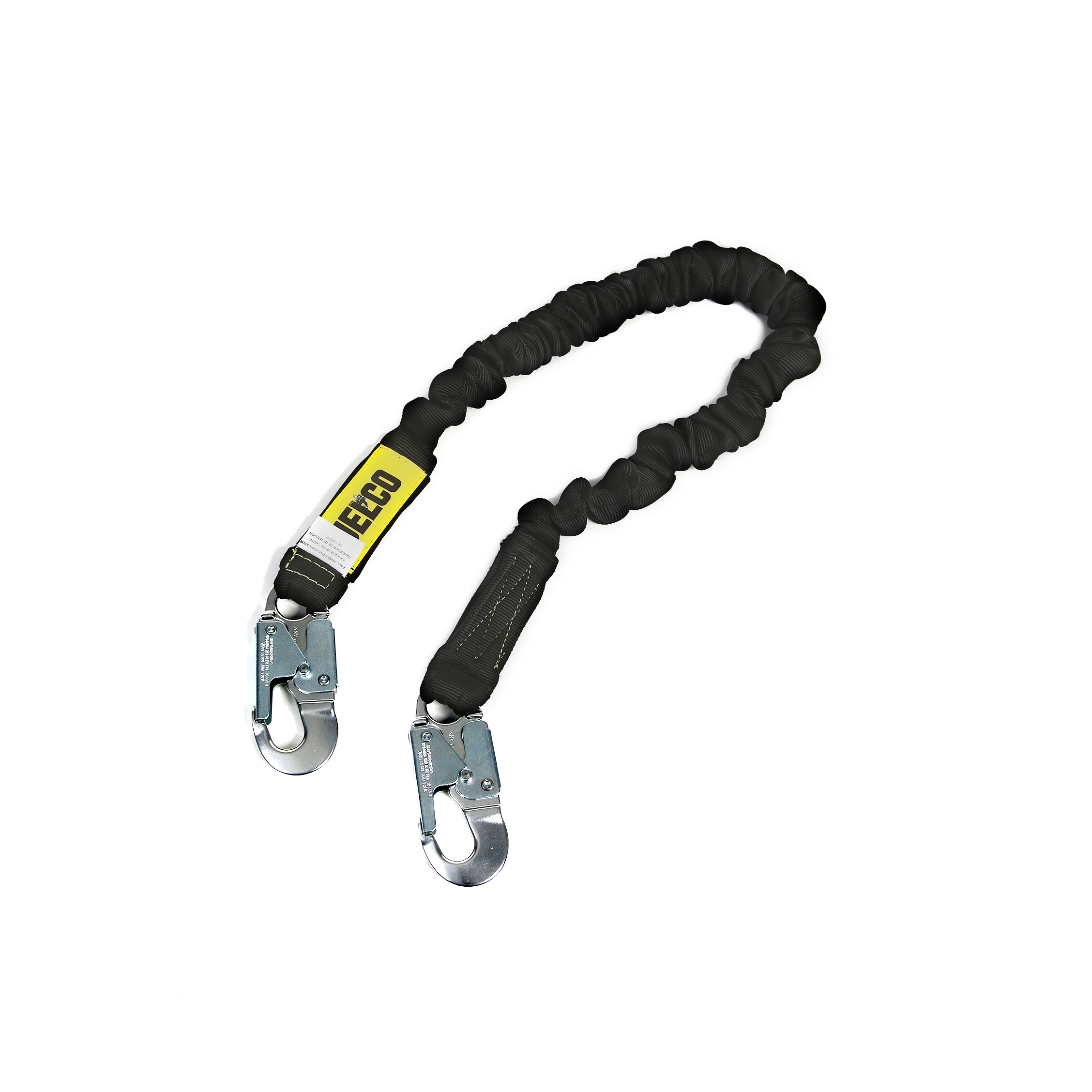 The JELCO arc flash compliant FLEX-NoPac energy absorbing lanyard is made with high strength nylon. The FLEX-NoPac feature allows the harness to expand and contract with the users movements and returning to the original length. The No-Pac design eliminates a bulky external ZORBER shock absorber. The unit is constructed of a durable nylon to resist abrasion and UV degradation. This model features two aluminum snap hooks.