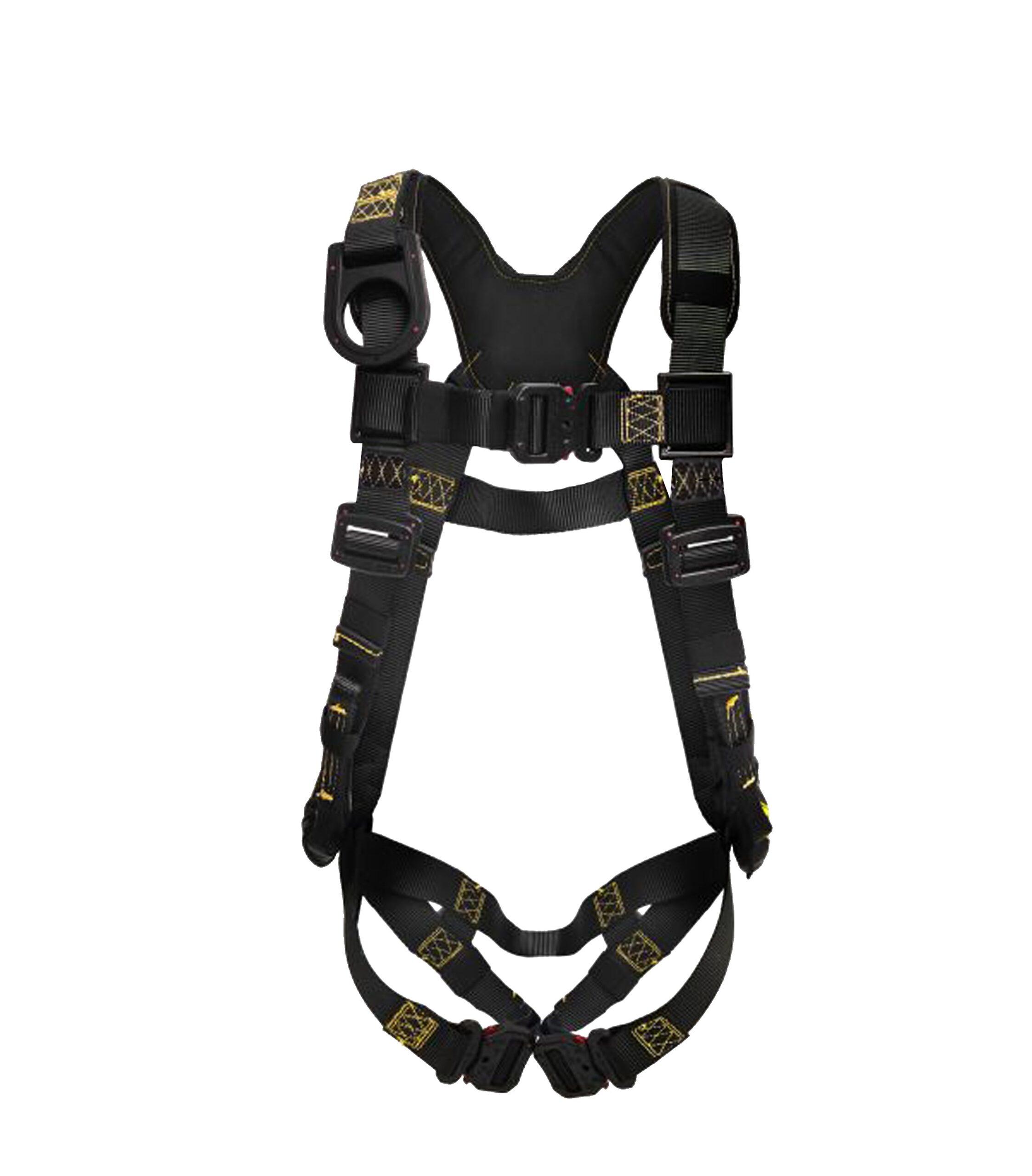 This model is constructed with high strength nylon and all dielectric hardware. This style harness will feature two torso adjustors to further assist in you getting the best fit for you. Dielectric quick connects are used on the chest strap and leg strap for ease of doning. The attachment point on the harness is an 18″ extension with a dielectric dorsal d-ring at the end. All JELCO H-Style harnesses feature two breakaway lanyard keepers as well as two fall indicators. Additional features include a lightweight backpad and integrated rescue loops.